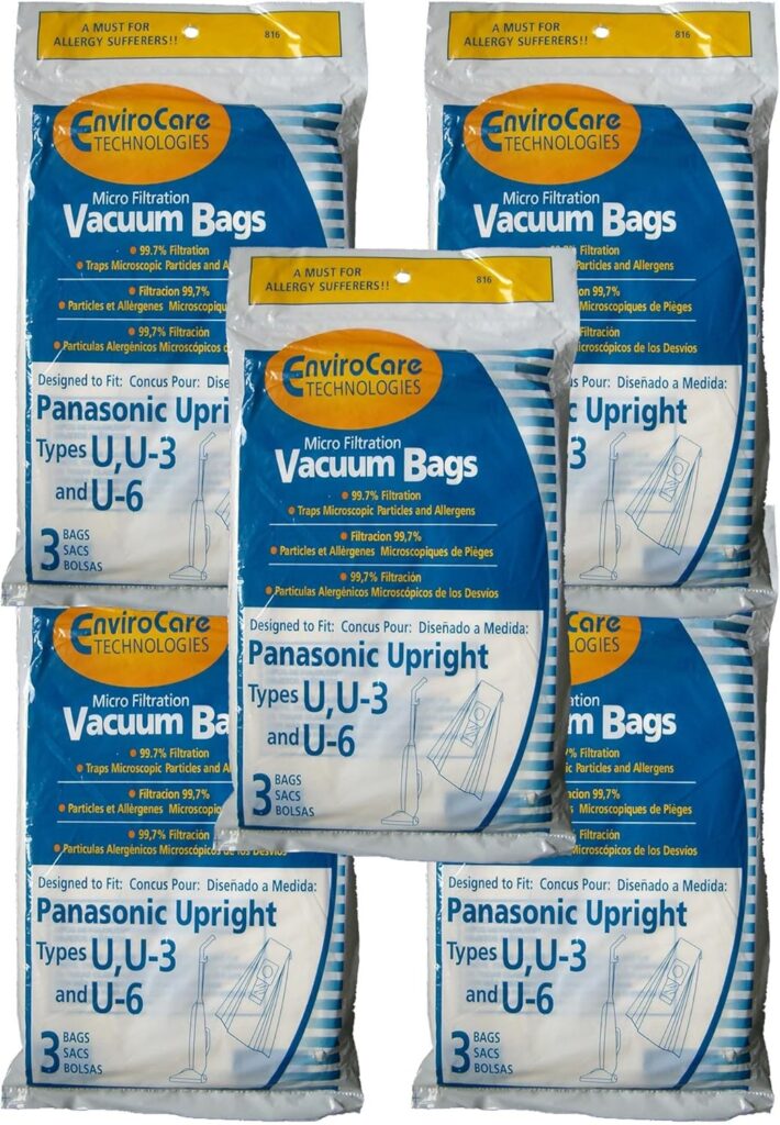Envirocare Tecnologias feitas para caber em sacos de aspirador de pó verticais Panasonic U, U-3 e U-6, MC-V145M, MC-115P, MC-V5000 a MC-V5099, MC-V7300 a MC-V7399, MC-V6200 a MC-V6299