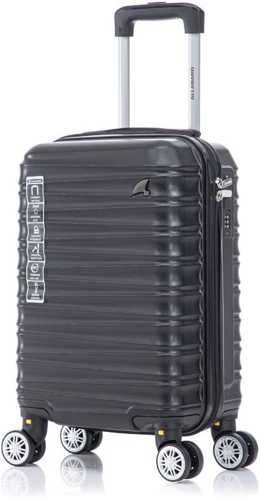 Allabard Mala de Bordo ABS, 55x35x20cm, 4 Rodas 360°, Fechadura Numérica, Preta