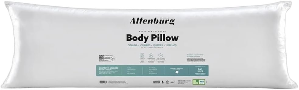 Descubra o conforto supremo com o Travesseiro Body Pillow da Altenburg. Com dimensões generosas de 40cm x 130cm, este travesseiro abraçador é perfeito para proporcionar suporte total ao corpo durante o sono. Confeccionado em tecido 100% poliéster na cor branca, oferece uma textura macia e agradável ao toque. Ideal para gestantes, pessoas que buscam melhor alinhamento corporal durante o sono ou simplesmente para quem gosta de dormir abraçado a um travesseiro confortável. Seu tamanho versátil permite múltiplas posições de uso, adaptando-se às suas necessidades de sono e descanso. A qualidade Altenburg se reflete no acabamento cuidadoso e na escolha dos materiais, garantindo durabilidade e mantendo sua forma por mais tempo. Este body pillow é uma excelente escolha para transformar suas noites de sono em momentos ainda mais aconchegantes.