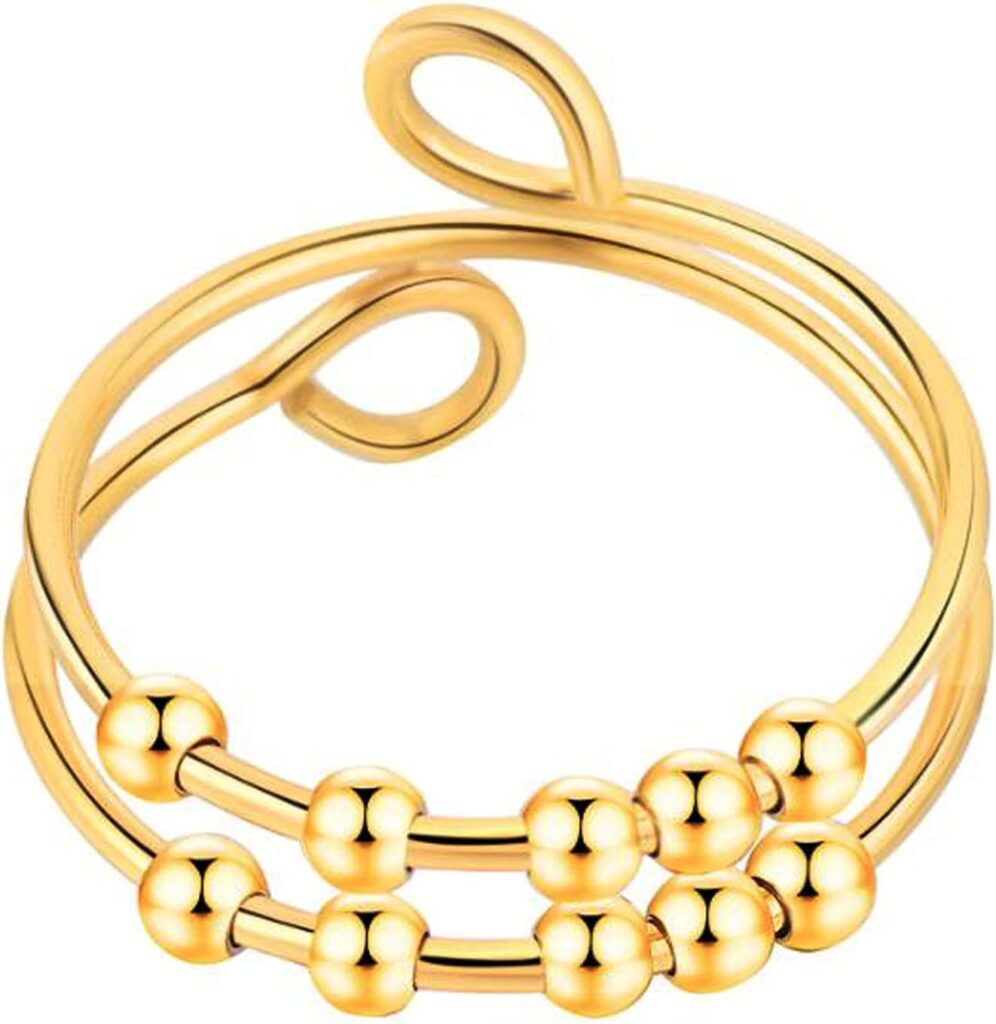 Anéis Ansiedade de Camada Dupla para Mulheres Anéis de Preocupação Ajustáveis Contas Aliviar o Estresse Anéis Fidget Spinner para Meninas e Homens 19