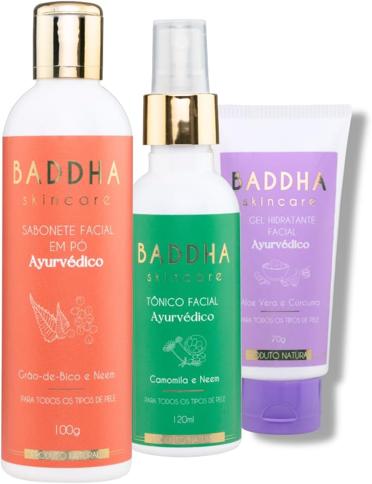 🌟 Skincare Ayurveda Minimalista: Kit completo com Sabonete Facial em Pó, Tônico Facial e Gel Hidratante, inspirado na sabedoria Ayurveda.