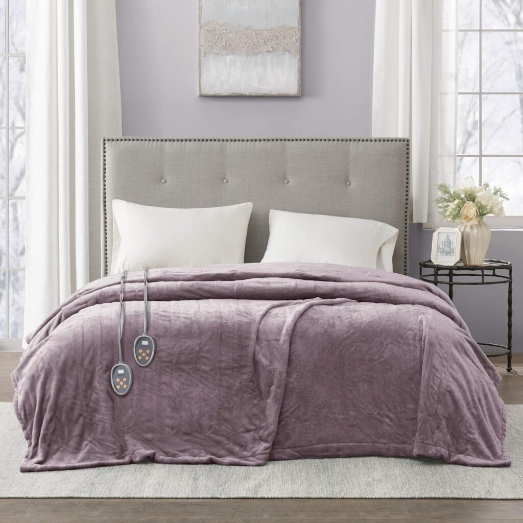 Beautyrest Cobertor elétrico aquecido de pelúcia eleito com 20 controladores de ajuste de nível de calor equipados com tecnologia de conforto seguro e 10 horas de desligamento automático, Queen: 204x200, lavanda, BR54-0656