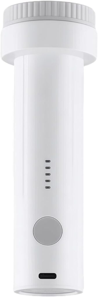 Portátil e recarregável por USB – A bomba de vácuo elétrica compacta (5,6 × 1,20 cm, 0,1 kg) cabe facilmente em bolsas de viagem. A bateria de 1500 mAh alimenta até 80 usos, para que você possa comprimir a qualquer hora, em qualquer lugar.
