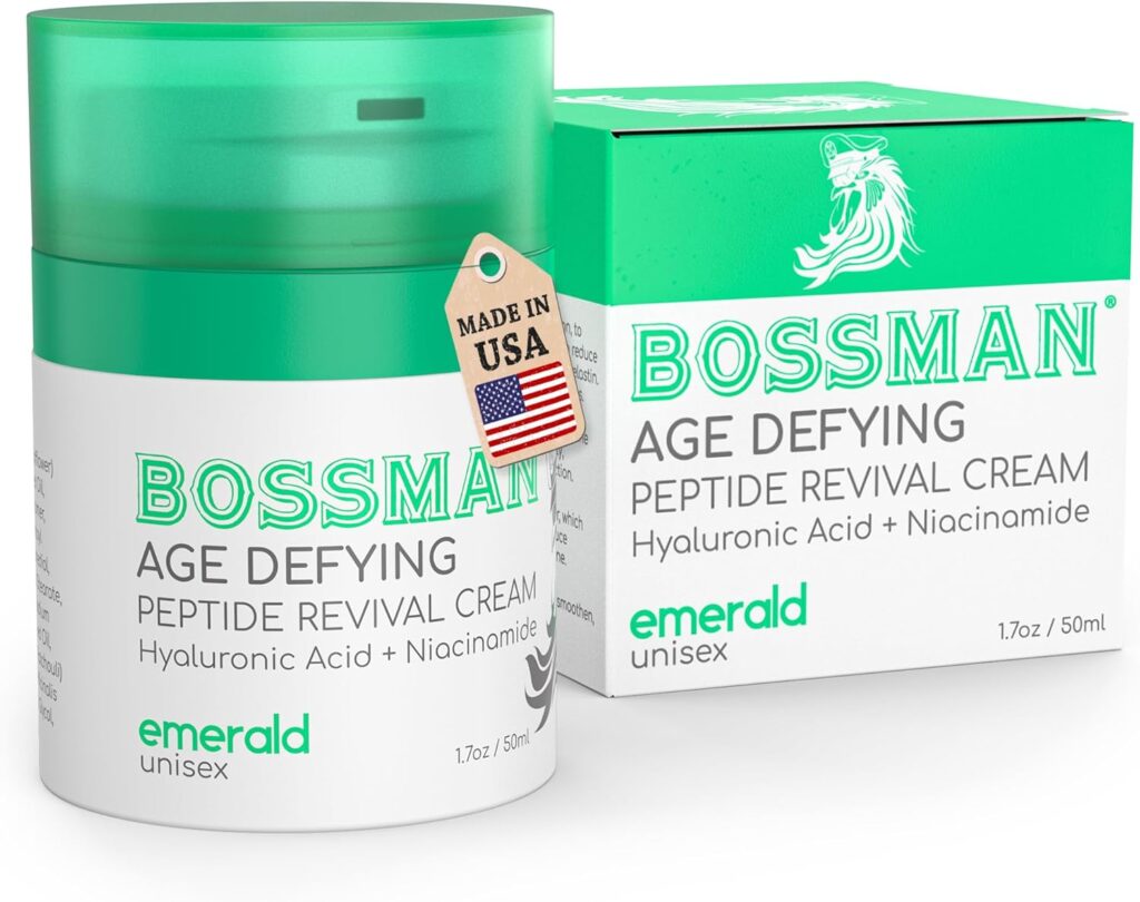 Bossman Peptide Revival Cream 50 ml - Perfume esmeralda (chá verde) - Hidratante facial antienvelhecimento para homens e mulheres - Niacinamida e ácido hialurônico - Hidratante peptídeo para todos os
