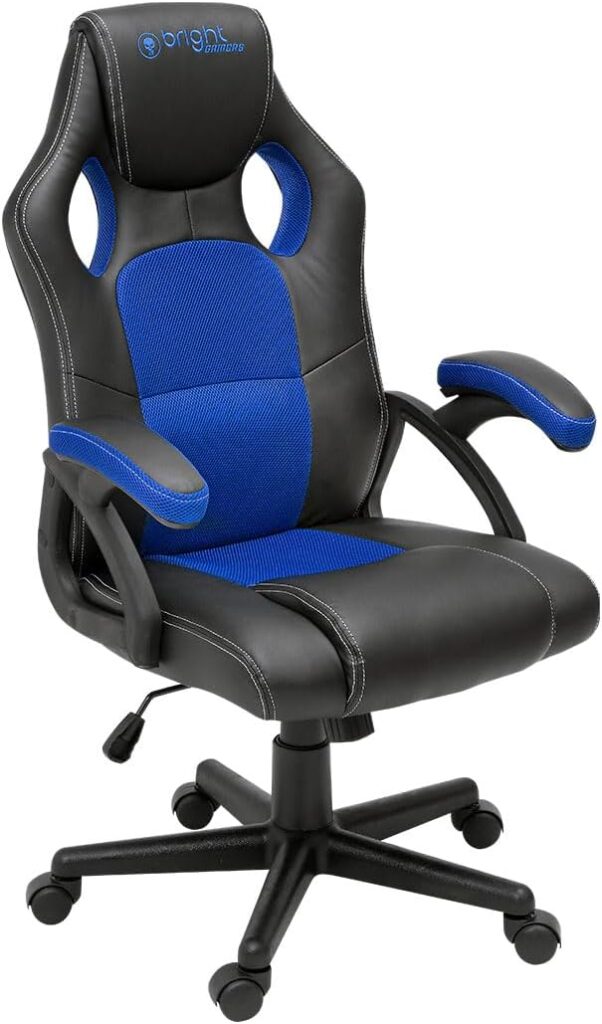 Bright, Cadeira Gamer na cor Preto e Azul, Regulagem de Altura, Rodízio em Nylon, Braços de Apoio em Polipropileno com Acolchoado, Possui Inclinação de Amortecimento e 3 Níveis de Altura