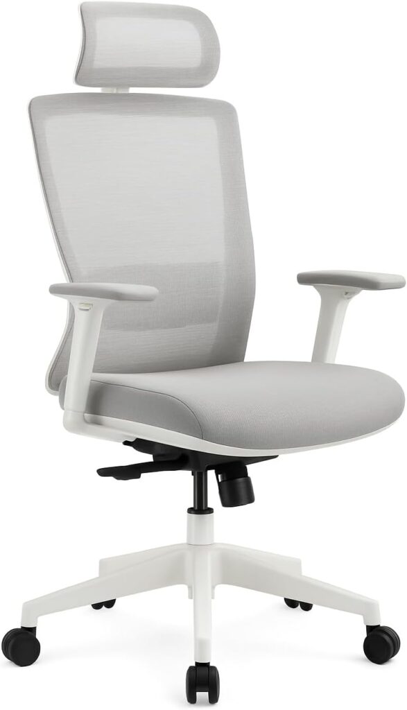 Encosto alto em mesh cinza clara: ventilação contínua e estilo elegante.Cadeira de escritório reclinável (90° a 120°): ajuste perfeito para trabalho, estudo ou relaxamento.Apoio de cabeça e braços reguláveis: mais ergonomia e suporte personalizado.Cadeira giratória regulável com rodízios silenciosos: mobilidade suave sem danificar o piso.Assento confortável com espuma de alta densidade: ideal para longas jornadas sem desconforto.Cadeira escritório até 120 kg: estrutura robusta e durável para uso diário.
