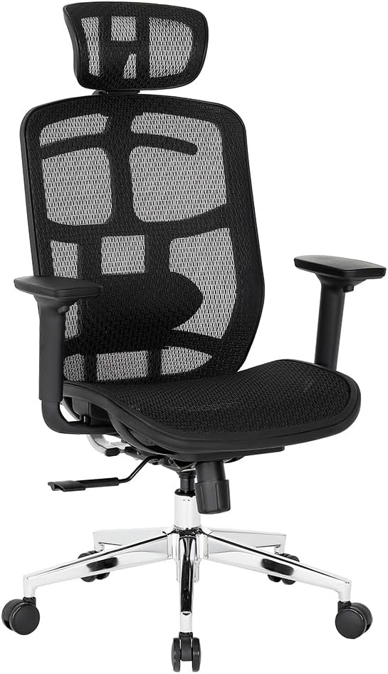 Cadeira Office DT3 Diana, ergonomica em Mesh Vidartex™, apoio de cabeça 3D, apoio lombar almofadado com ajuste manual, suporta até 120kg e altura máx. de 1,80m (Black)