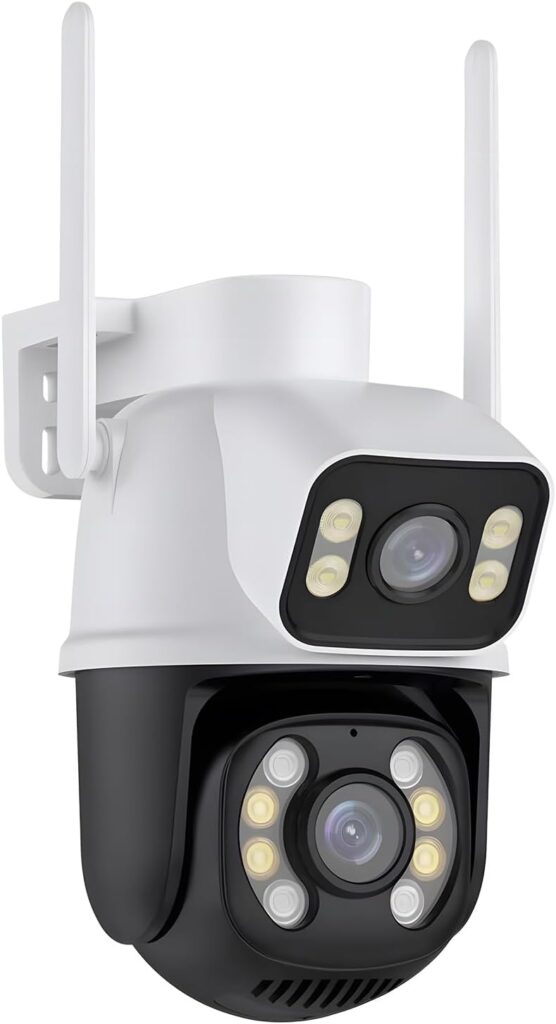 ▶【360° visão perfeita e tela dupla】: Combinando um design exclusivo de lente grande angular fixa e rotativa, esta câmera oferece uma vigilância panorâmica de 360° sem pontos cegos. A funcionalidade única de visualização em tela dividida significa que você pode obter o dobro da visualização em um único dispositivo, com uma câmera substituindo a necessidade de duas câmeras tradicionais, proporcionando uma visão mais ampla para revelar mais detalhes