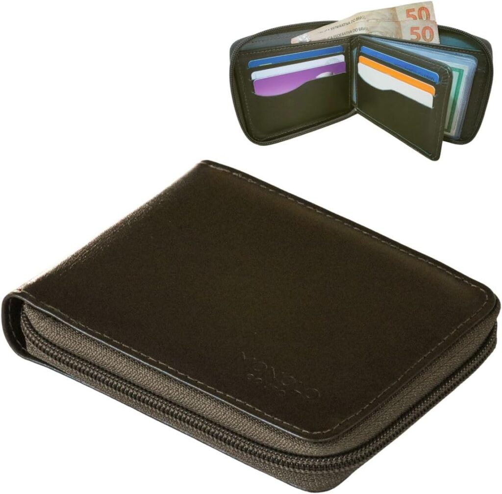 Carteira Masculina Couro Legítimo Ziper Porta Cartão Documentos Crédito CNH Grande Completa Monolo