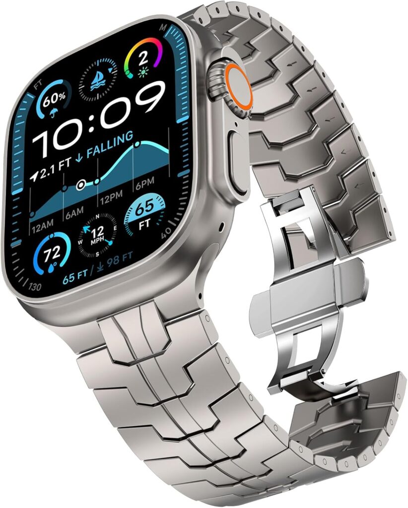 Melhore sua experiência no Apple Watch com nossa pulseira de aço inoxidável premium de 24 mm de largura, meticulosamente criada para Apple Watch Ultra 2 e compatível com várias séries de Apple Watch. Esta pulseira robusta e moderna possui um acabamento de titânio, um fecho dobrável personalizado para facilitar o ajuste e é ajustável para pulsos de 140 a 230 mm. Aproveite a resistência e a durabilidade do aço inoxidável 316L, perfeito para estilos de vida ativos. Doze elos removíveis permitem um ajuste personalizado, e nossa política de troca ou reembolso de 18 meses garante sua satisfação.