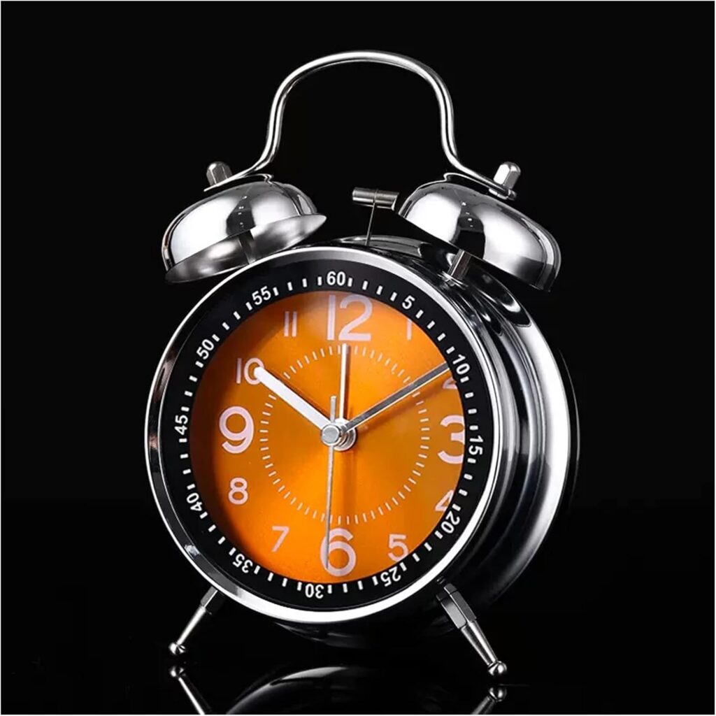 Despertador quarto 4 polegadas Twin Bell despertador, despertador alto com luz de fundo para quarto, relógio de mesa operado por bateria relógio de cabeceira (cor: laranja)
