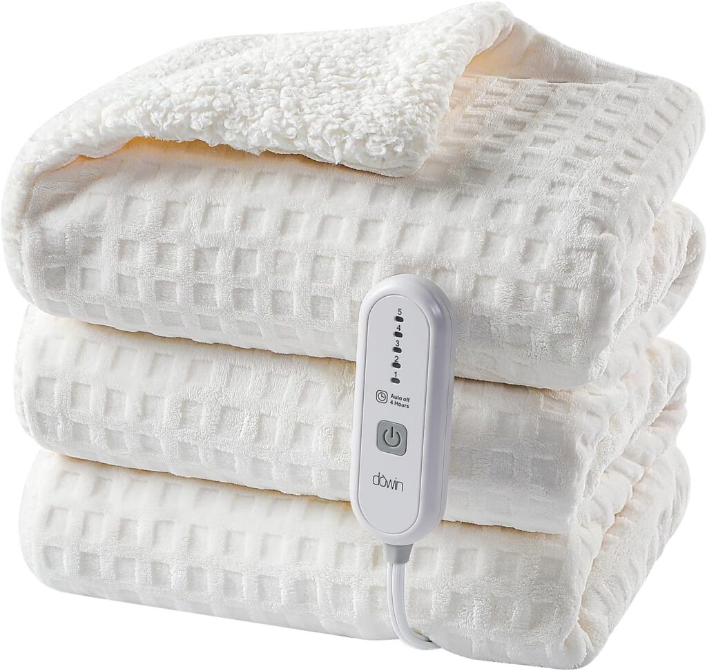Dowin Cobertor elétrico aquecido – cobertor de lã de waffle com desligamento automático para sofá, cadeira de escritório, cama, adultos, felpudo, aconchegante, lavável na máquina, 127 x 152 cm, bege