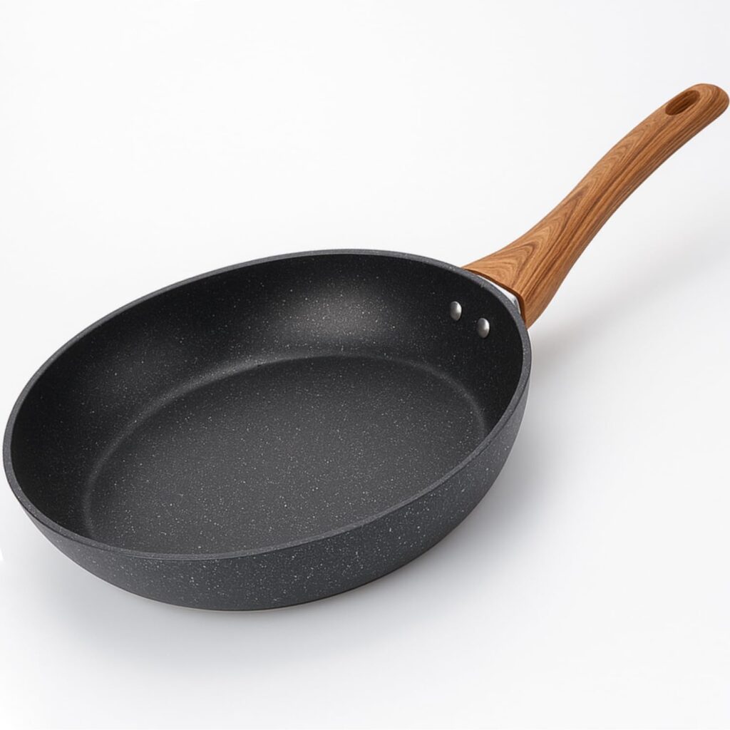 Frigideira Antiaderente Cerâmica Interno e Acabamento Exterior Resistente Cabo De Madeira Fundo de Indução, Revestimento em Cerâmica de Alumínio Fogão a Gás e Elétrico 24cm Premium