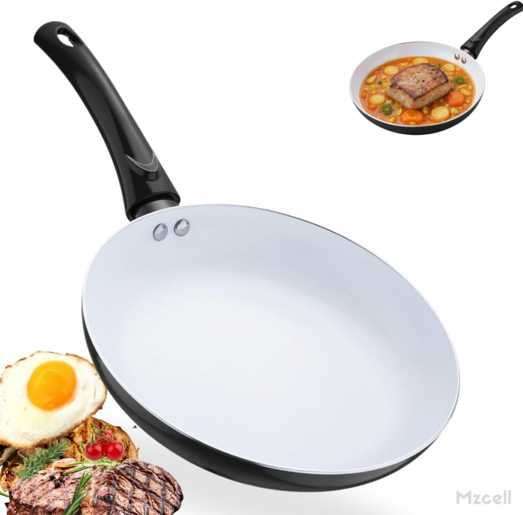Frigideira Cerâmica Antiaderente Grande, 28cm, Cabo Ergonômico, Para Fogão a Gás e Elétrico, Cozimento Uniforme, Cozinha Saudável Não Usa Óleo