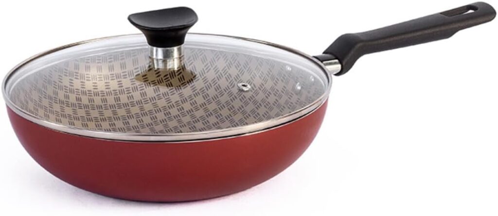 Frigideira Funda Tramontina LORETO 24 Cm Para preparar suas receitas do dia a dia com muito mais praticidade, conte com a frigideira funda Tramontina em alumínio com revestimento interno e externo em antiaderente Starflon Max vermelho 24 centímetros 2,2 litros. É produzida em alumínio com espessura de 2,3 milímetros com revestimento interno e externo de antiaderente Starflon Max, características que juntas, proporcionam um cozimento rápido e uniforme dos alimentos, evitam que eles grudem em sua superfície e a tornam mais fácil de limpar. Seu cabo é em baquelite antitérmico, material que não aquece e oferece maior segurança e conforto no manuseio. Ela ainda é muito prática e pode ir à máquina de lavar louças, facilitando seus preparos na cozinha! ___________________________________ Informações Gerais: Corpo de alumínio com espessura de 2,3 mm que proporciona cozimento rápido e uniforme. Revestimento interno e externo de antiaderente Starflon Max que não gruda, é fácil de limpar, mais durável e não é prejudicial à saúde, pois é livre de PFOA. Cabo de baquelite antitérmico que oferece segurança durante o manuseio. Pode ir à máquina de lavar louças facilitando seu dia a dia. ___________________________________ Recomendações de Uso: A capacidade volumétrica máxima para cozimento é de 3/4 da capacidade total da peça. Posicione o cabo do utensílio voltado ao centro do fogão. Em fogões com grade, centralize a peça sobre a chama ou fonte de calor e alinhe o cabo com a grade. Utensílios quentes devem estar fora do alcance das crianças. Antes do primeiro uso, lave com esponja macia, sabão neutro ou detergente líquido. Depois de secar, unte a área interna com óleo ou gordura e leve ao fogo por um ou dois minutos. Deixe esfriar e lave novamente. Seu utensílio Starflon está pronto para uso com ou sem gordura, sempre em fogo baixo ou médio (nunca superior a 260 ºC). Para mexer os alimentos use somente utensílios de silicone, nylon ou madeira. Com o uso, o cabo pode afrouxar devido à dilatação normal dos materiais. Reaperte apenas o suficiente, sem forçar. Limpeza: Evite a imersão do utensílio quente em água fria. Nunca utilize produtos abrasivos na lavagem. Se deixar queimar alimentos, umedeça a área e reserve até que possa remover os resíduos grudados com esponja e sabão. Para descarte do produto e embalagem siga as orientações de reciclagem vigentes. ___________________________________ Capacidade: 2.20 L ___________________________________ DÚVIDAS? ENVIE UMA MENSAGEM ATRAVÉS DO CHAT __________________________________ Nós das LOJAS MONTRE te atenderemos da melhor forma possível 😀