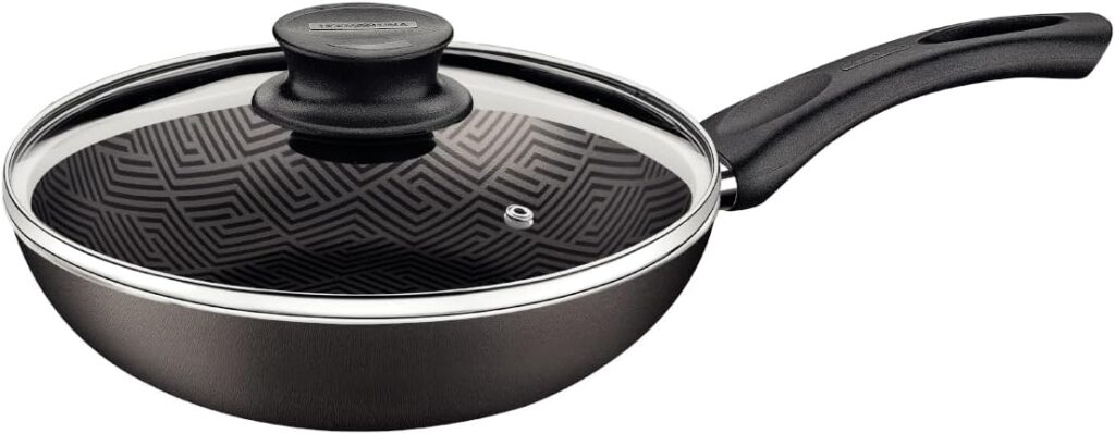 Beleza e a praticidade é com a frigideira funda Tramontina Paris em alumínio com revestimento interno e externo em antiaderente Starflon Max chumbo com tampa de vidro 26 centímetros 2,9 litros. Ideal para uso no dia a dia, ela é produzida em alumínio com espessura de 2 milímetros e revestimento interno e externo de antiaderente Starflon Max, ambas características que proporcionam um cozimento rápido e uniforme dos alimentos, evitam que eles grudem em sua superfície, e devido a isso, a tornam também muito mais fácil de limpar. O cabo é em baquelite antitérmico, material que não aquece e oferece maior segurança durante o manuseio. É uma frigideira durável e que pode ir à máquina de lavar louças, otimizando seu dia a dia. Escolha Tramontina e leve o melhor para dentro da sua cozinha!