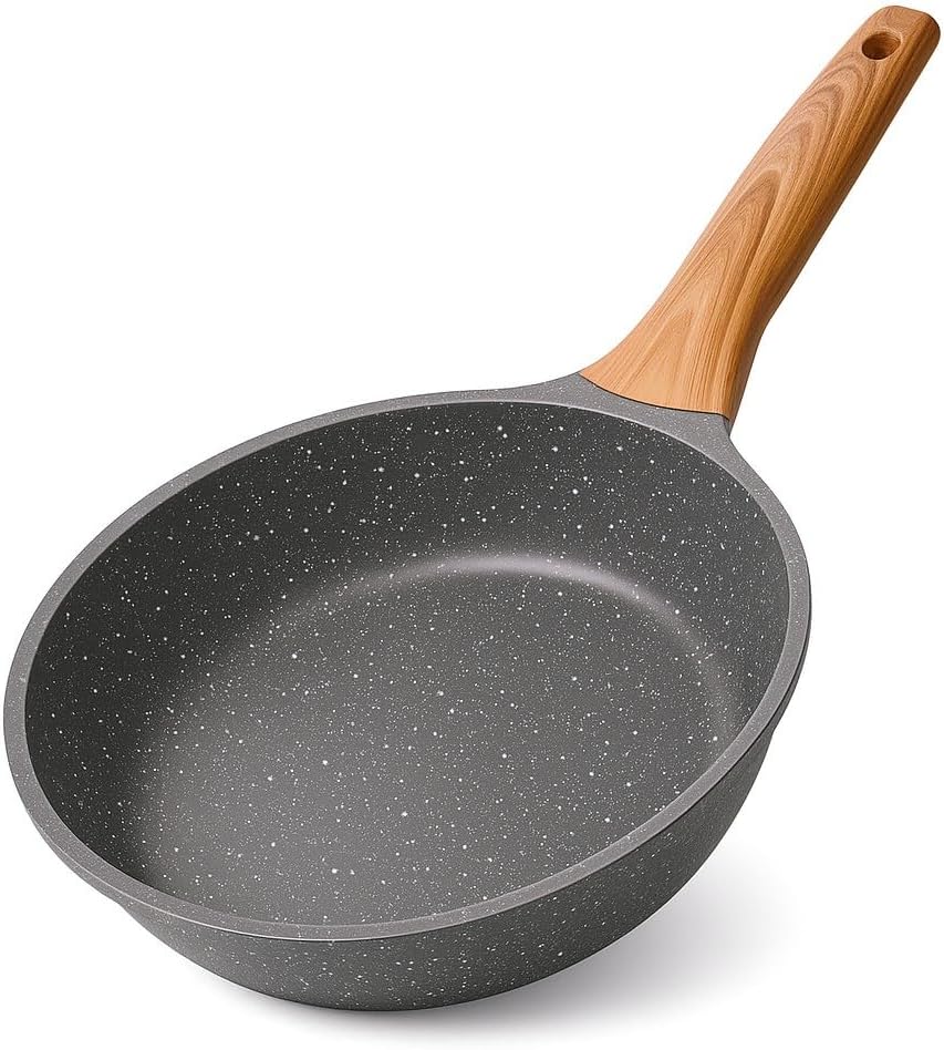 Frigideira Grande com Revestimento Cerâmico Alumínio, Cabo Estilo Madeira, Fundo para Indução, Gás e Elétrico