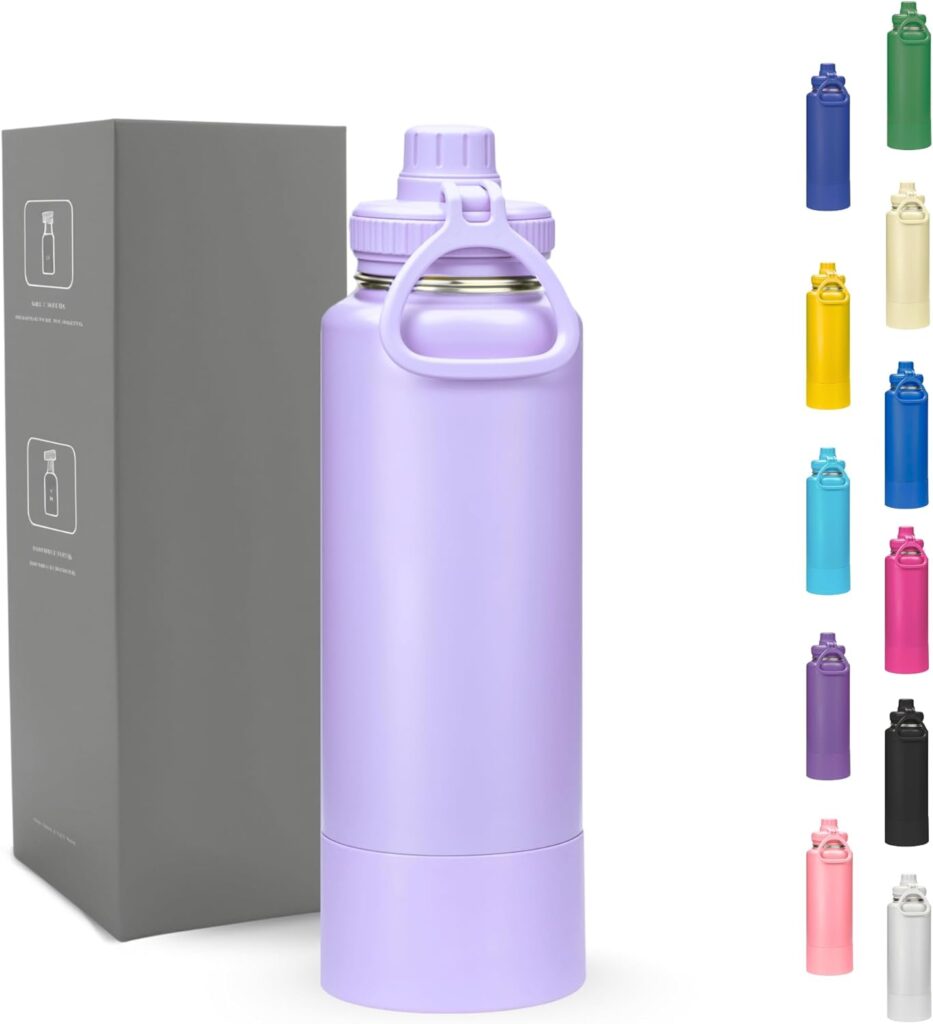 Garrafa Térmica 800ml - Duplamente Isolada a Vácuo, Base Emborrachada Anti Derrapante, Mantém Bebidas Quentes por 12 Horas e Geladas por 24 Horas, (Lilás)