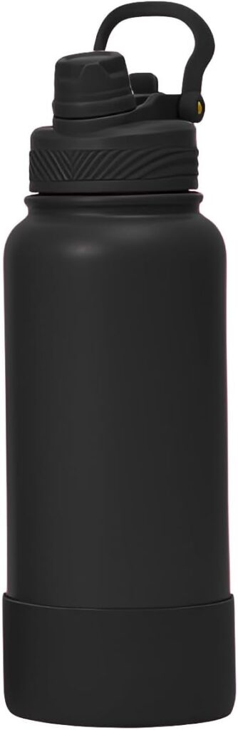 Garrafa Térmica de Água 1 Litro com Alça Garrafinha 2 em 1 com Canudo e Saída Livre em Inox e Sistema Térmico a Vácuo (Preto)
