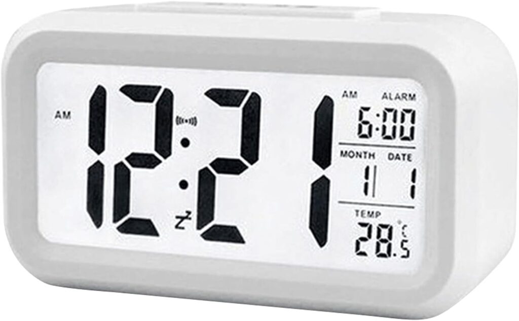 ✅Função de luz inteligente: o despertador contém um sensor de luz. No escuro, a tela irá ligar automaticamente a função de luz suave, o que é conveniente para você verificar a Hora no meio da noite. Durante o dia, o brilho da tela voltará ao normal.