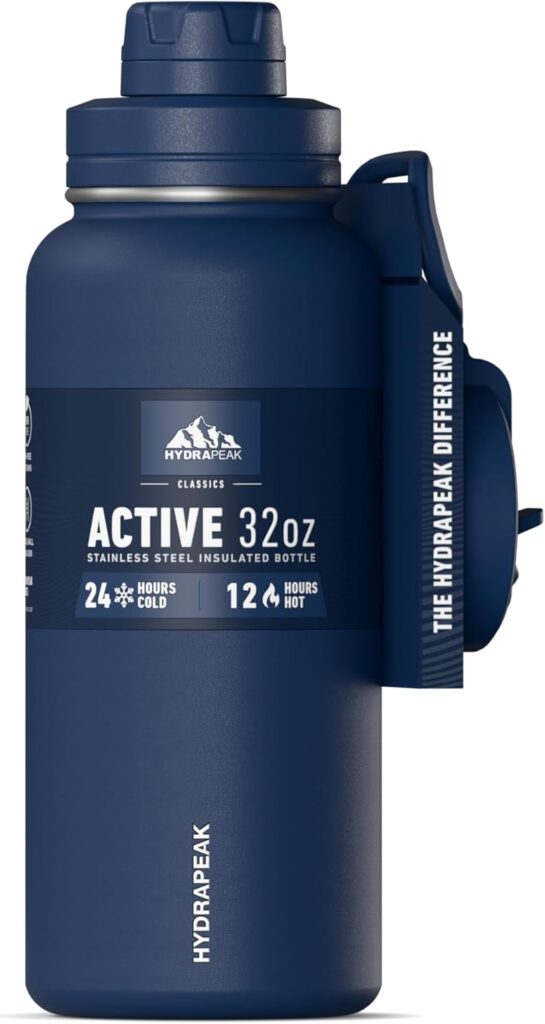 Hydrapeak Garrafa de água esportiva isolada de 947 ml com canudo e tampa de bucha, à prova de vazamento e derramamento, mantém as bebidas frias por 24 horas, quentes por 12 horas, garrafas de água de