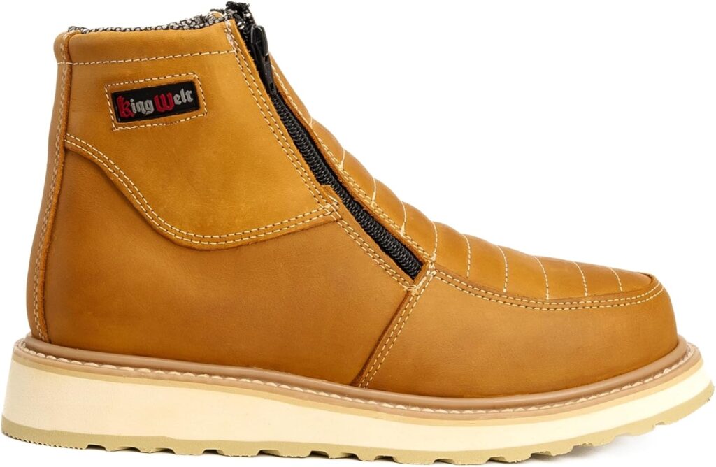King Welt Bota de trabalho masculina ultra flexível 15 cm 339 com zíper de densidade dupla leve