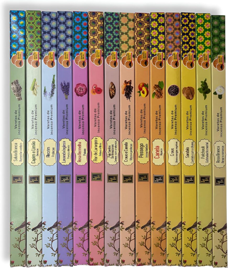Variedade de Aromas para Diferentes Momentos: O kit contém 14 aromas distintos, permitindo que você escolha o incenso ideal para cada situação, desde relaxamento até energização e elevação do ambiente.