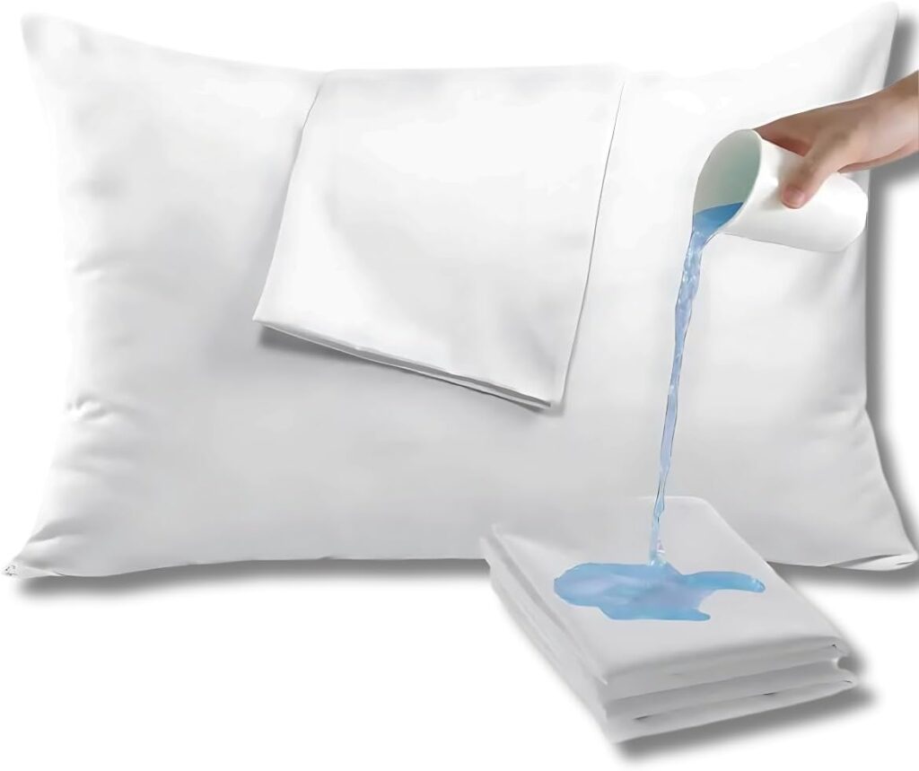 Kit 4 Capas Protetoras de Travesseiro Impermeáveis – 200 Fios, 100% Algodão, Antiácaro, Antifungo, Antibacteriano, Hipoalergênico, Lavável e Silencioso Melhor Qualidade do Sono UK Original