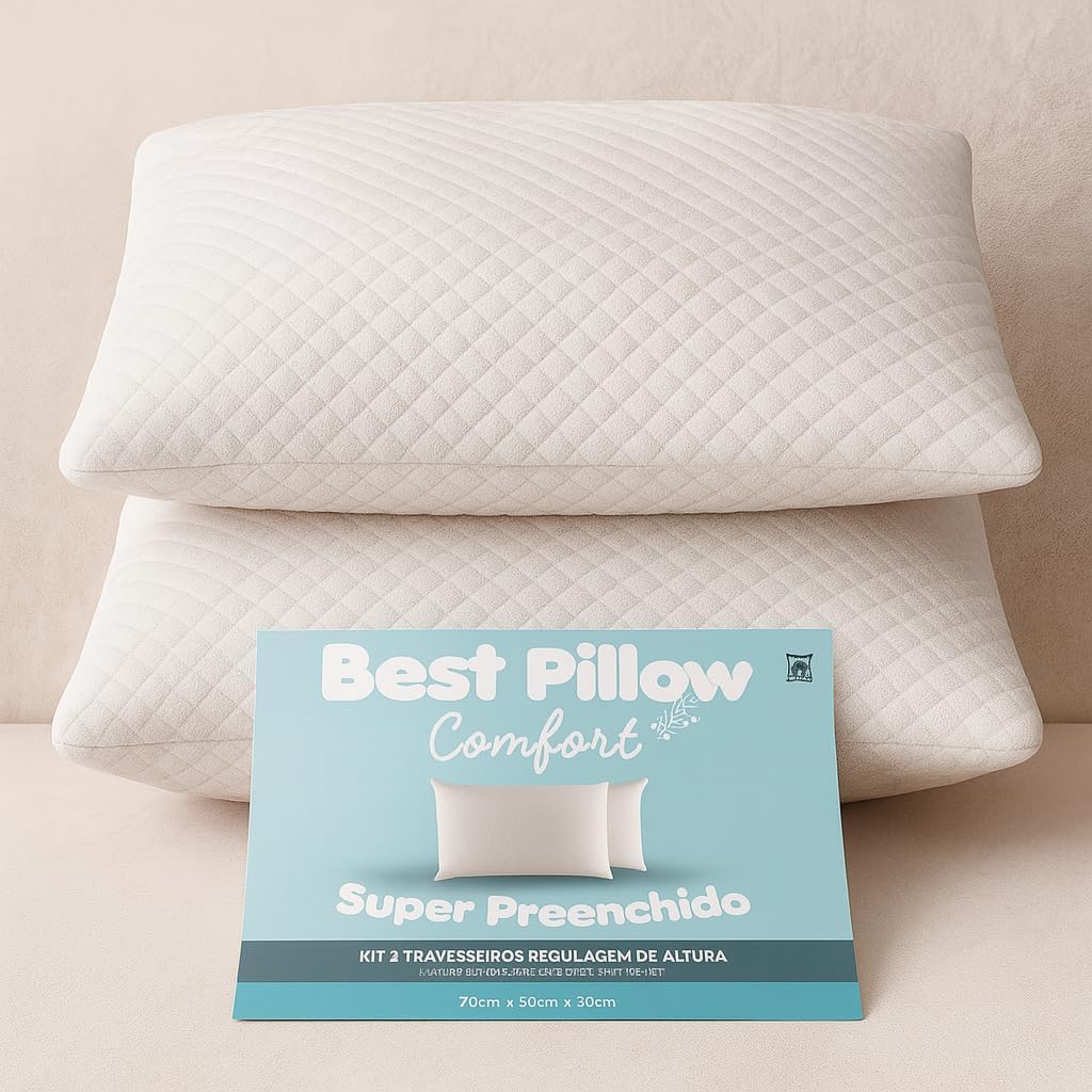 Conforto premium: travesseiro tamanho Queen com capa 100% algodão de 250 fios e enchimento macio tipo alternativa ao pluma.