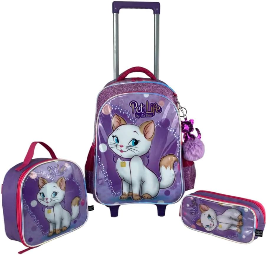 Kit Infantil Mia Poliéster 3 Peças Com Rodas Pet Life