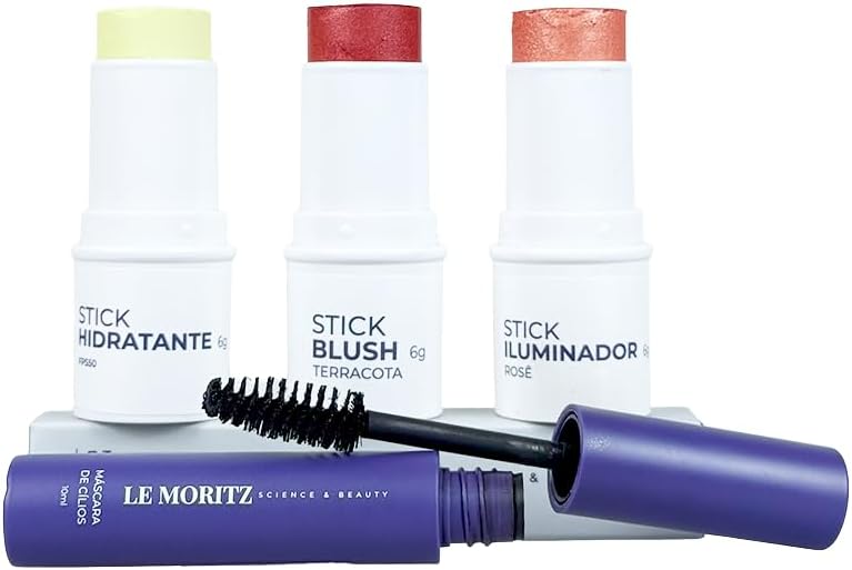 Kit Le Moritz Trio Stick + Máscara de Cílios Regenerativa — Maquiagem pró-age para mulheres 45+ Le Moritz: única marca focada em peles e traços maduros. Beleza não tem data de validade. Nossa linha pró-age atende necessidades reais da pele madura, sem estereótipos. O QUE VEM NO KIT Máscara de Cílios Regenerativa (8g): aplicador de alta precisão que alcança cílios curtos e finos; alonga e levanta; resistente à água; não borra, não esfarela, não acumula; duração até 12h; fácil de remover; ideal para olhos sensíveis; cuidado de longo prazo para fios mais fortes. Stick Terracota (6g): 4 em 1 — blush, sombra, contorno e batom. Textura cremosa que não marca linhas de expressão e realça o tom natural da pele madura. Stick Rosê (6g): iluminador cremoso para glow sofisticado, sem acumular em vincos. Stick Hidratante FPS 50 (6g): hidratação potente com toque seco; prepara a pele antes da maquiagem e ajuda no conforto ao longo do dia. POR QUE É IDEAL PARA MULHERES 45+ Texturas pró-age: não craquelam, não ressecam e valorizam a beleza natural. Fórmulas pensadas para peles e olhos sensíveis. Itens multifuncionais: rotina prática, nécessaire leve. Funciona em todos os tipos de pele. RESULTADOS ESPERADOS Cílios mais visíveis, definidos e alongados, inclusive os mais curtos. Pele com viço elegante, sem evidenciar linhas. Conforto e acabamento estável por até 12 horas (máscara). COMO USAR (PASSO A PASSO) 1. Prepare: aplique o Stick Hidratante FPS 50 no rosto limpo. Aguarde absorver (toque seco). 2. Realce: use o Stick Terracota nas maçãs (blush), pálpebras (sombra) e áreas de contorno desejadas. Esfume com dedos ou esponja. 3. Ilumine: deposite o Stick Rosê no alto das maçãs, ponte do nariz e canto interno dos olhos. 4. Finalize os olhos: com a Máscara de Cílios Regenerativa, encaixe o aplicador na raiz e faça movimentos em zigue-zague. Use a ponta para alcançar os cílios menores. RESPOSTAS RÁPIDAS (QUEBRA DE OBJEÇÕES) Borra ou transfere? Não. Resistente à água, não borra e não esfarela. Marca linhas? Não. Os sticks têm textura cremosa que não evidencia vincos. É difícil de remover? Não. A máscara sai facilmente sem agredir os fios. É pesada na pele? Não. Os sticks têm acabamento leve e confortável. Pode usar sem base? Sim. Os sticks funcionam na pele limpa ou sobre maquiagem. Pele sensível pode usar? Sim. Fórmulas pensadas para sensibilidade (sem drama, sem borrar). ESPECIFICAÇÕES Conteúdo: 1 Máscara de Cílios Regenerativa (8g) + 3 Sticks (Terracota 6g, Rosê 6g, Hidratante FPS 50 6g). Acabamento: alongamento e definição (olhos); viço e glow elegante (pele). Fixação: até 12 horas (máscara). Remoção: água morna e/ou demaquilante suave. Indicação: mulheres 45+, peles maduras e olhos sensíveis. DIFERENCIAIS DA MÁSCARA DE CÍLIOS REGENERATIVA Separa até os menores cílios. Feita para olhos sensíveis. Valoriza cílios maduros e cria olhar mais marcante. Estimula o cuidado de longo prazo dos fios. Mantém os cílios macios e flexíveis. Resistente à água. Não acumula, não borra, não mancha, não esfarela, não resseca. Dura até 12h. Fácil de remover. OBSERVAÇÕES DE USO Para mais volume, aplique 2 a 3 camadas, deixando secar levemente entre elas. Para alongamento máximo, use a ponta do aplicador nos cantos interno e externo. Reaplique o Stick Hidratante ao longo do dia se desejar mais conforto. GARANTIA Você tem 90 dias de garantia para testar em casa. Se não amar, devolvemos seu dinheiro.