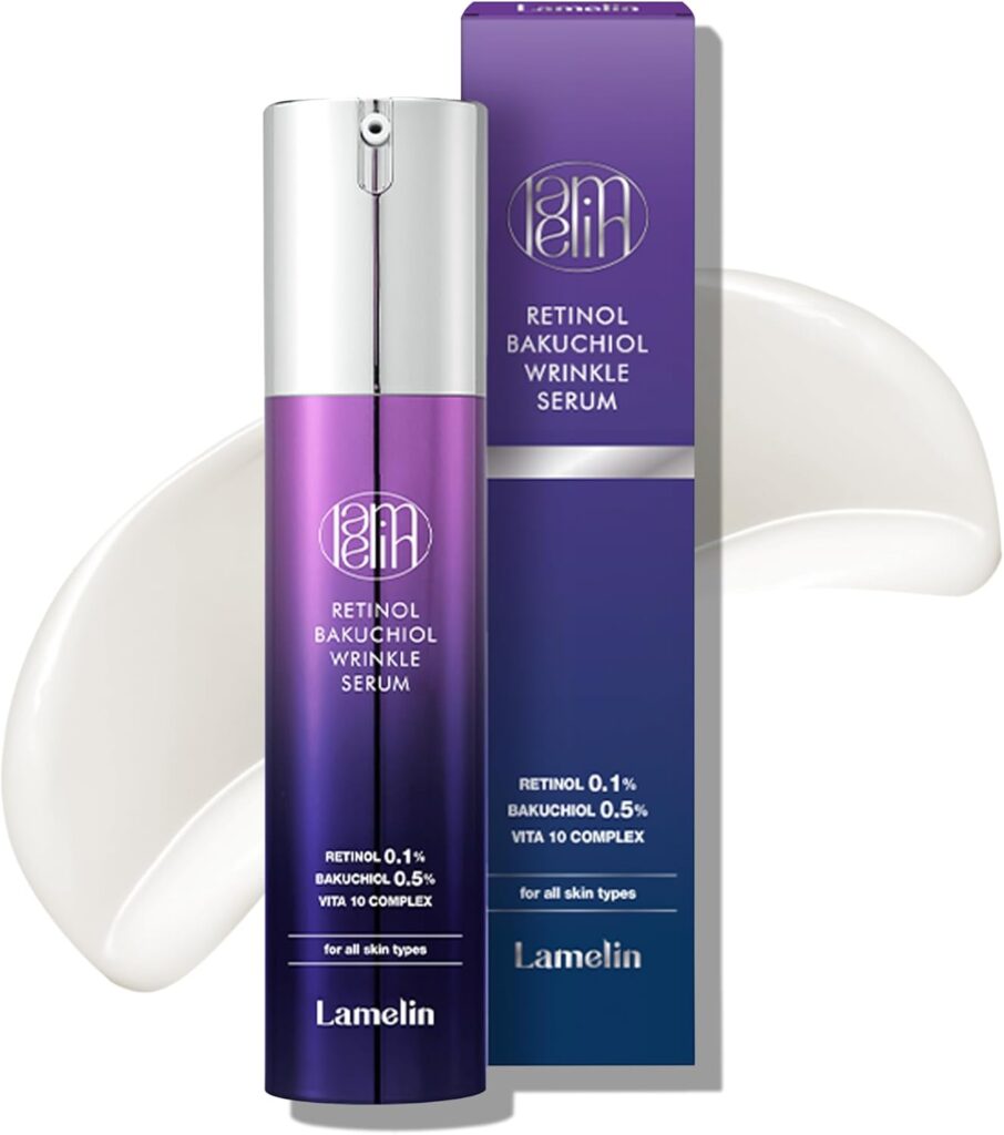 Lamelin Creme de soro para rugas, retinol e bakuchiol e niacinamida, 10 vitaminas e ervas, antioxidante, correção de pescoço escuro para bolsas oculares, clareamento da pele para dia e noite, 1,76 ml