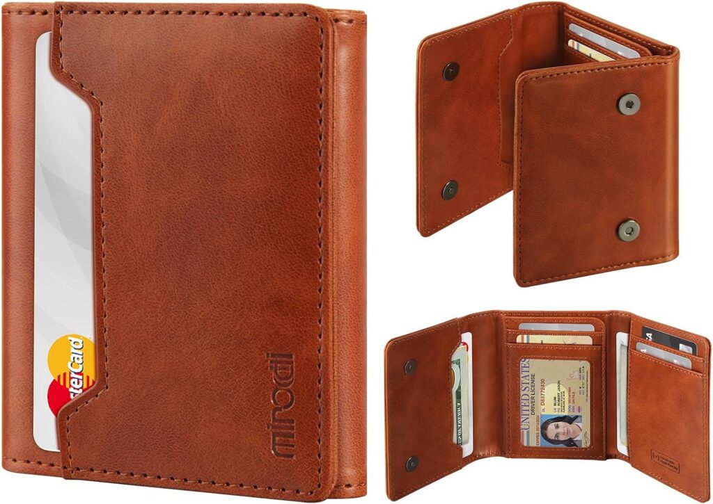 Miroddi Carteira Masculina, Compatível Com Apple Find My, Rastreador, De Couro Tripla Para Cartões, Bolso Frontal Minimalista Bloqueio Rfid, Vários Compartimentos, Porta-Cartões, Marrom
