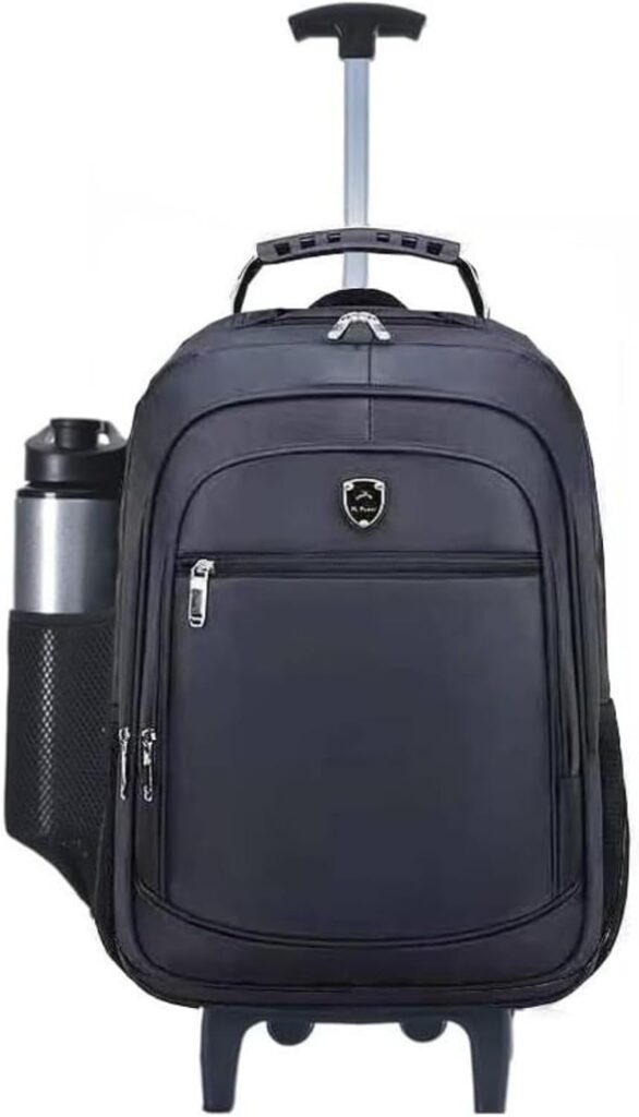 Adquira a sua mochila De Rodinhas que foi desenvolvida para acomodar seus pertences com melhor aproveitamento do espaço interno, a mochila possui 4 compartimentos com Zíper além de 2 bolsos laterais e compartimento interno para notebook, além de todo esse espaço a mochila é resistente a água, suportando chuvas (até 20 minutos em chuvas leves) , com rodinhas em Gel resistentes e puxador em alumínio com altura regulável ideal para encarar a rotina do dia a dia. Com garantia e nota fiscal. Compartimento para Notebook 15/16 POL Ideal para: Faculdade, Escola, Trabalho, Viagens. DESCRIÇÃO: A mochila segue as seguintes características. - Mochila Reforçada com diversos compartimentos, ideal para Universidade, Escola, Trabalho, Viagens. - Compartimento internos especial para Notebook de 15/16 Polegadas ou outros objetos. - 4 Compartimentos Espaçosos com zíper. - 2 Bolsos laterais para levar sua garrafa de água e outros objetos . - Cabo de Aço na alça para dar mais segurança. - Cor Preta. - Rodinhas Em Gel. - Puxador em Alumínio. - Base em Plástico reforçado de alta resistência. -Medidas aproximadas: -Altura Mochila 50 cm -Largura 37 cm -Profundidade 20 cm. -Altura Com Haste do Carrinho levantada chega ate 98 Centímetros. Observações: 1- A garrafa não acompanha o produto, é meramente ilustrativa. 2- O Notebook não acompanha o produto, é meramente ilustrativo. TESTAMOS TODOS OS ZIPERES E COSTURAS ANTES DE ENVIAR. PRODUTO NOVO PRODUTO ORIGINAL PRODUTO COM NOTA FISCAL ENVIO IMEDIATO.