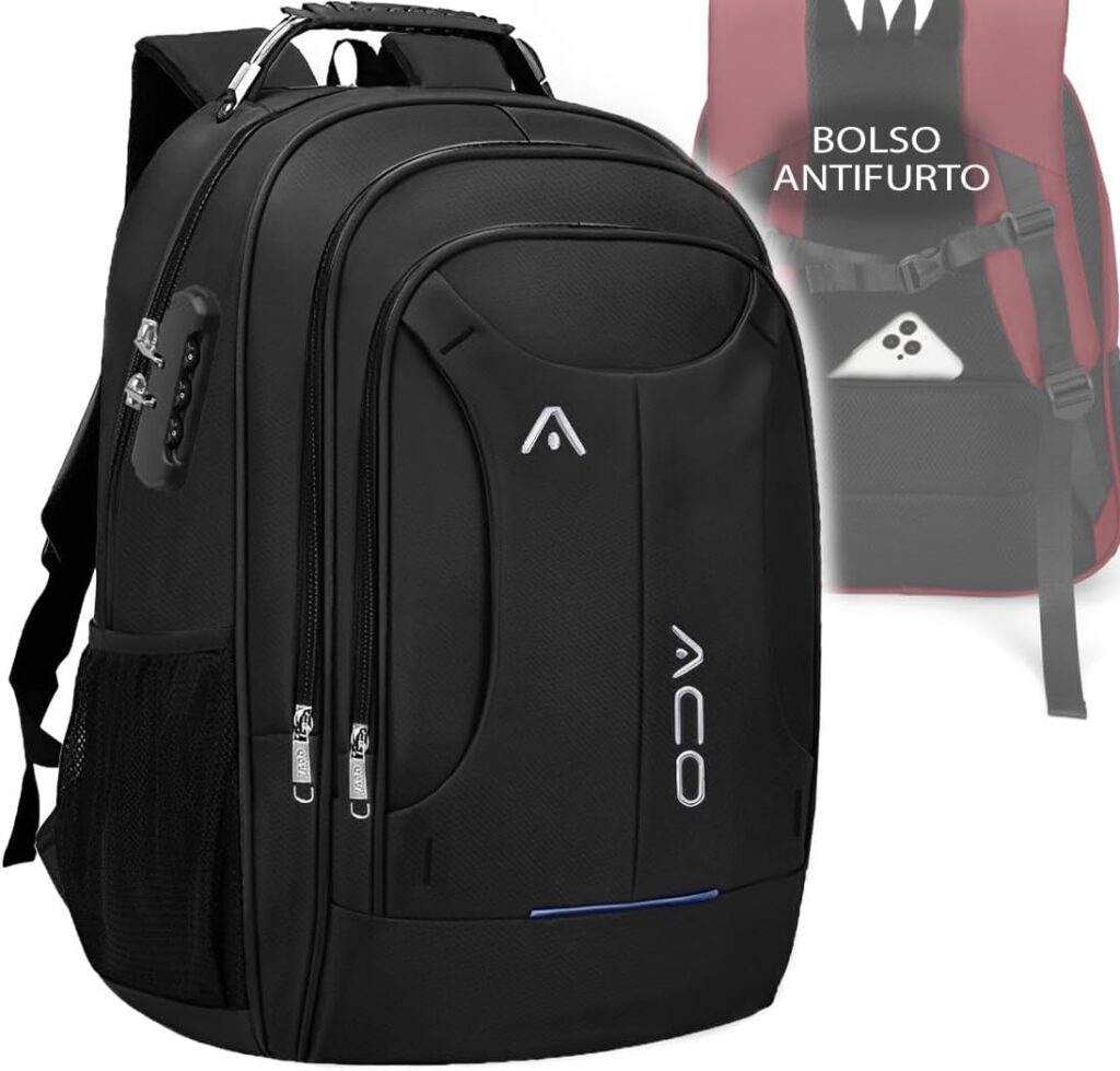 Cansado de comprar mochilas sem qualidade e durabilidade? Procura uma mochila versátil, com lindo design, com fino acabamento ? Então você acaba de encontrar! Essa mochila é ideal para o seu dia a dia, seja no trabalho, Faculdade, Universidade, cursinho, viagem de negócios, onde for, com ela você poderá carregar seus pertences tranquilamente como livros, cadernos, celular, cabos, acessórios, tablet, notebook e muito mais, tudo isso proporcionando um ótimo conforto para suas costas, além disso essa mochila possui alguns detalhes exclusivos, confira! MODELO ERGONÔMICO NÃO CAUSA DORES NAS COSTAS! INFORMAÇÕES TÉCNICAS: - Fabricada em tecido Poliéster de alta qualidade, suportando uma certa quantidade de água, como leves chuvas e respingos de água; - Costuras reforçadas; - Capacidade de carga de 35 litros - Compartimento interno acolchoado para Notebook de até 15 polegadas - Saída USB acoplada na lateral da mochila - Saída Fone de ouvido acoplada na lateral da mochila - Marcador de bagagem acoplada na lateral da mochila - Cadeado acoplado na lateral da mochila - Alça de mão com cabo de aço e pegador emborrachado; - Costura reforçada com acabamento personalizado; - Zíper duplo personalizado em banho niquelado e com ótimo deslize; - Alça para as costas regulável, resistente e confortável; - Possui forro com espuma para as costas proporcionando mais conforto para a coluna, evitando contato direto com os objetos de dentro da mochila! - 2 bolsos laterais para carregar pequenos objetos; - 2 telas nos bolsos que suportam squeeze; - Puxadores personalizados em metal inoxidável; - Design exclusivo; PERGUNTAS FREQUENTES Quais medidas a mochila tem? R: Aproximadamente: altura 49 cm x largura 36cm x profundidade 20cm. *A mochila possui saída USB, como funciona? R: Sim, existe uma saída USB na parte externa da mochila e um cabo na parte interna que deverá estar conectado a um carregador portátil (*não acompanha carregador/bateria portátil*), desta forma você poderá carregar a mochila nas costas enquanto usa e recarrega seu celular. Sensacional não é mesmo! A mochila possui saída para fone de ouvido, como funciona? R: Sim, existe uma saída para fone de ouvido na parte externa da mochila e um cabo na parte interna que deverá estar conectado à seu celular, desta forma você poderá carregar a mochila nas costas enquanto ouve sua musica preferida, sensacional não é mesmo! _________________________________________________________________________________ - Garantimos a qualidade dos nossos produtos e o melhor preço para Você !