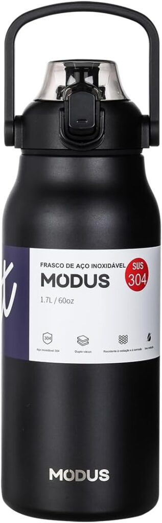MODUS Garrafa Térmica De Grande Capacidade Em Aço Inoxidável Com Canudo 1700ML (Preto)