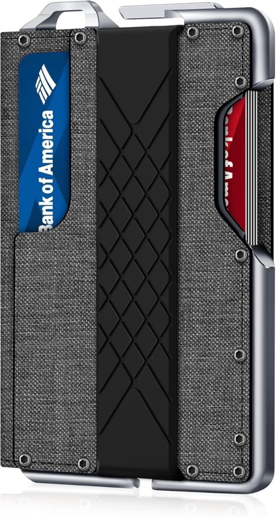 Uma carteira mínima – 2 cm, com espessura de carteira tática MURADIN de metal depois de armazenar seis cartões de crédito. Uma carteira masculina dobrável nem sempre fica inchada, pelo menos não quando você estiver usando carteiras minimalistas MURADIN para homens. Esta carteira elegante e elegante pode facilmente armazenar até 8 cartões, atende às suas necessidades de transporte diário.