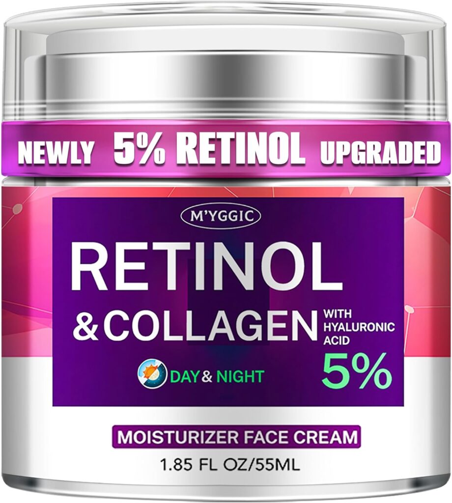 M'YGGIC Creme Facial Hidratante De Colágeno Com Retinol, Ácido Hialurônico E Arbutina, Creme Hidratante Facial Antienvelhecimento Diurno E Noturno Para Rosto E Pescoço Para Reduzir Rugas, Mulheres E