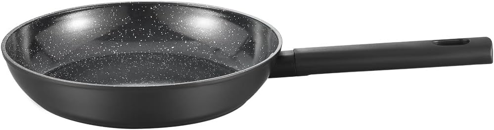 a frigideira antiaderente tem cabo em baquelite: não conduz calor para sua mão enquanto cozinha!