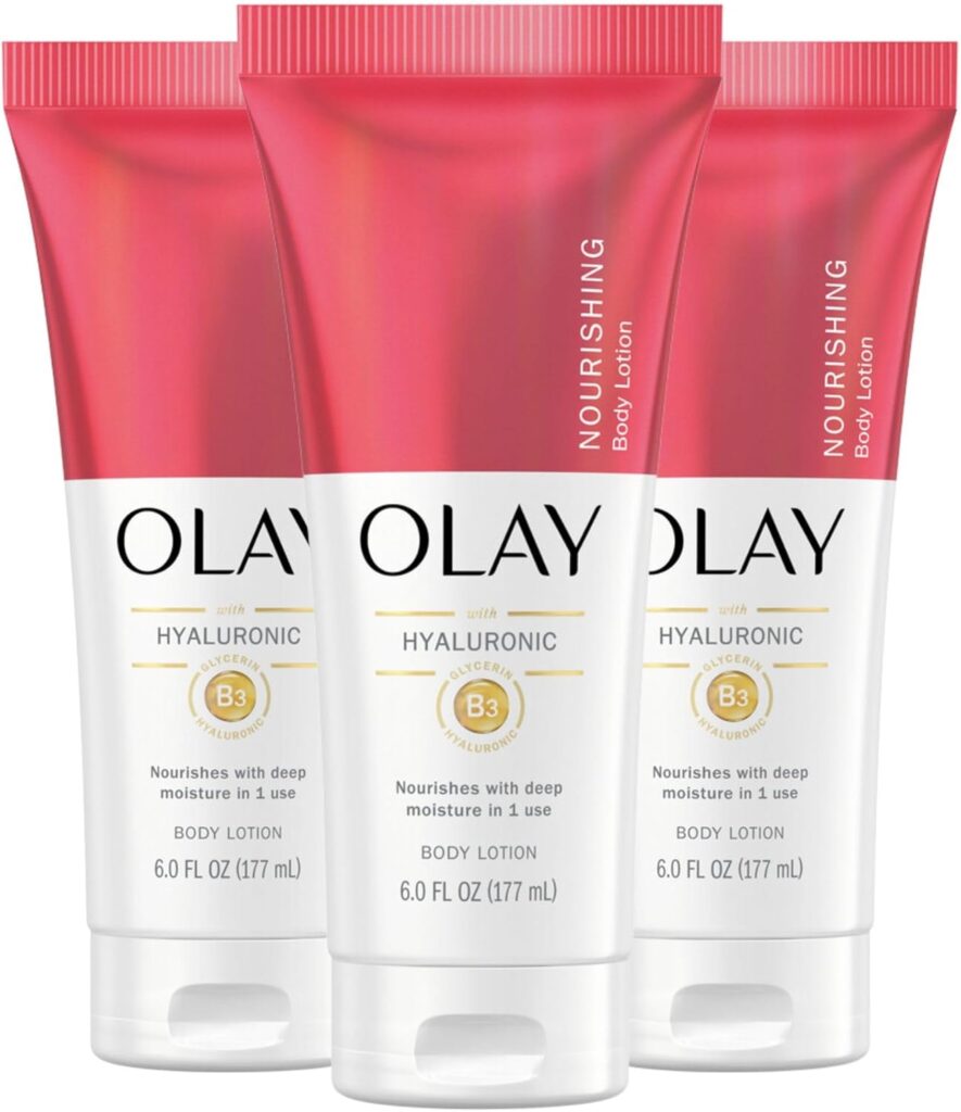 Olay Loção nutritiva e hidratante para mãos e corpo com ácido hialurônico, tubo de 177 ml (pacote com 3)