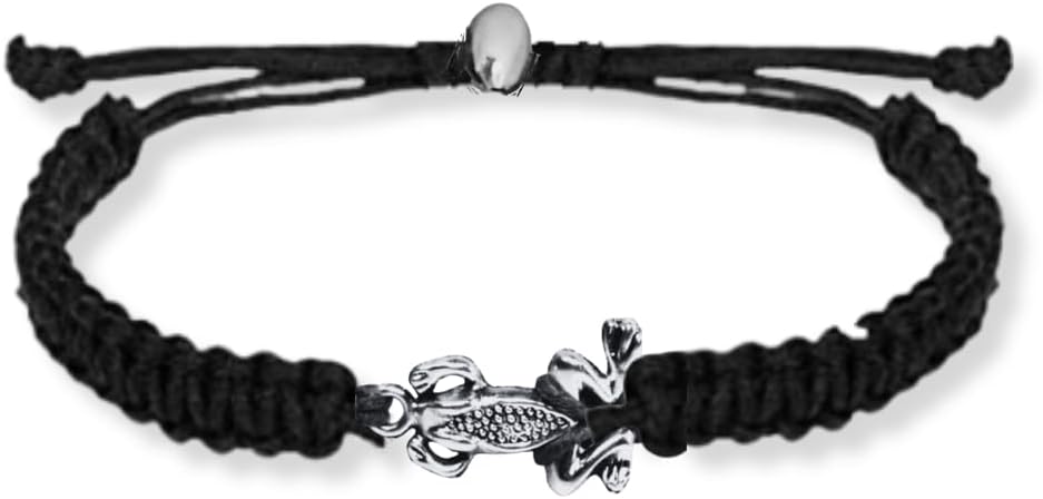 Adicione um toque de capricho ao seu estilo diário com esta encantadora pulseira de corda de sapo. O elegante cordão trançado preto apresenta um adorável pingente de sapo prateado que traz personalidade a este acessório casual. O fecho de nó deslizante ajustável garante um ajuste perfeito para qualquer tamanho de pulso, tornando-o confortável para uso durante todo o dia. Esta pulseira versátil funciona lindamente como uma peça independente ou empilhada com outras pulseiras para um visual mais em camadas. A estrutura de corda durável e o pingente de metal de qualidade tornam esta pulseira adequada tanto para passeios casuais quanto para uso diário. Seu design divertido o torna um presente ideal para os amantes da natureza ou qualquer pessoa que aprecia joias exclusivas inspiradas em animais. O design simples e atraente transita perfeitamente do dia para a noite, adicionando uma declaração sutil a qualquer roupa.