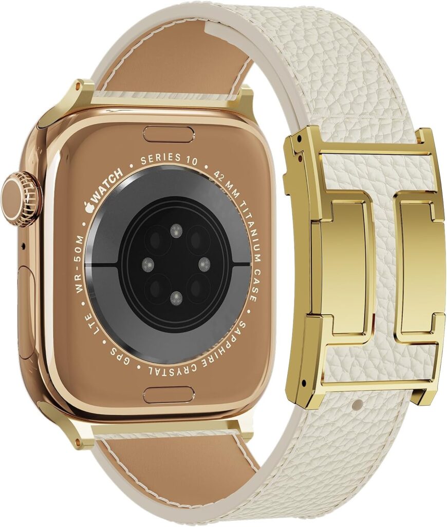 Pulseira magnética de couro compatível com Apple Watch Ultra de 49 mm, 46 mm, 45 mm, 44 mm, 42 mm, 41 mm, 40 mm e 38 mm, pulseira de substituição de designer para Apple Watch séries 9/8/7/6/5/4/3/2/1