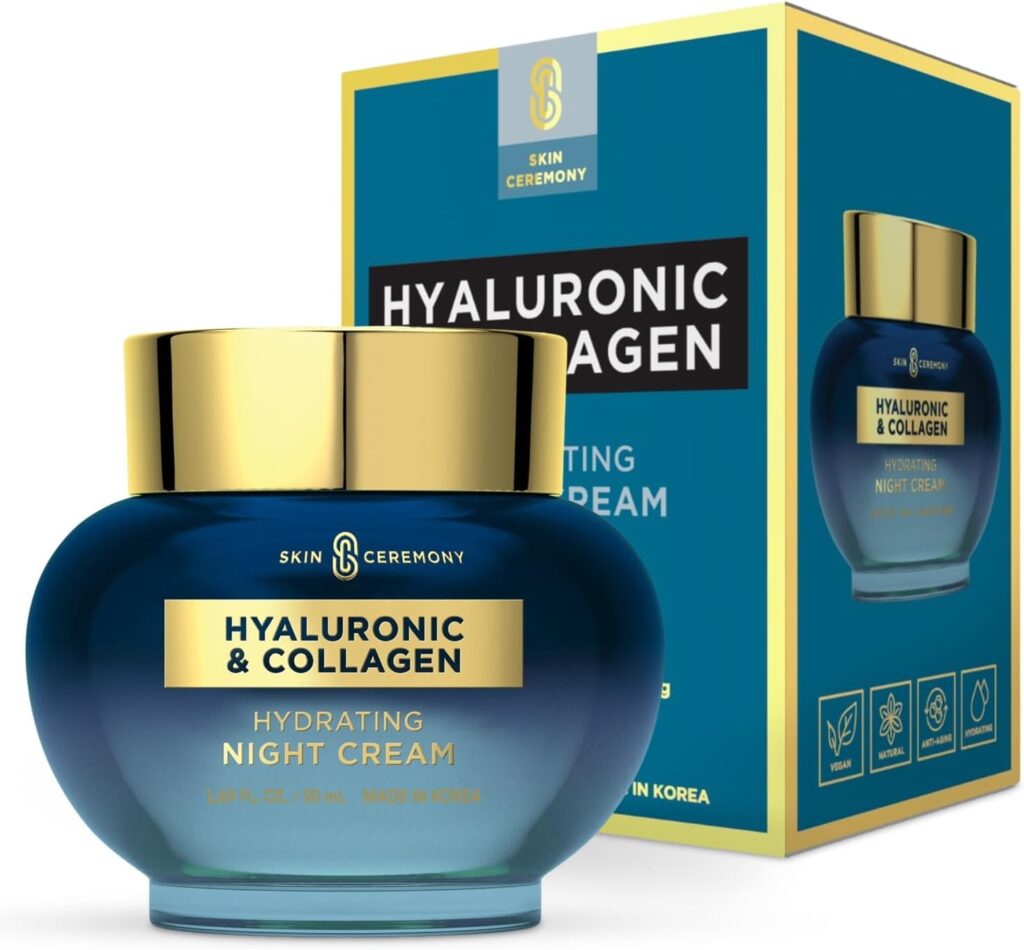 Excelência em cuidados com a pele coreana: eleve sua rotina noturna com este creme noturno coreano premium, infundido com ácido hialurônico e colágeno para hidratação definitiva e benefícios de volume da pele. Experimente cuidados eficazes com a pele em embalagens luxuosas.