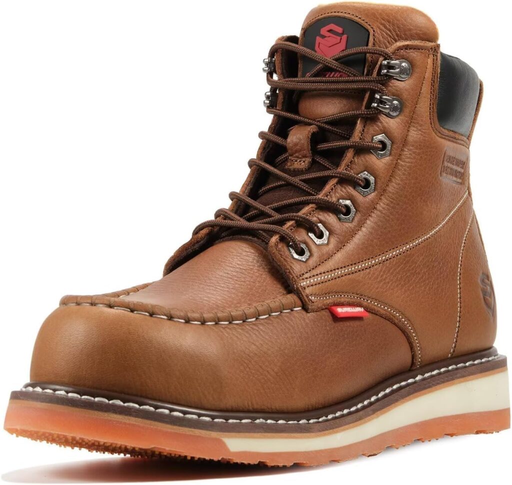 SUREWAY Botas de trabalho masculinas resistentes, macias/compostas/biqueira de aço, confortáveis, GoodyearWelt, couro de flor integral, botas de construção moc toe de 15 cm