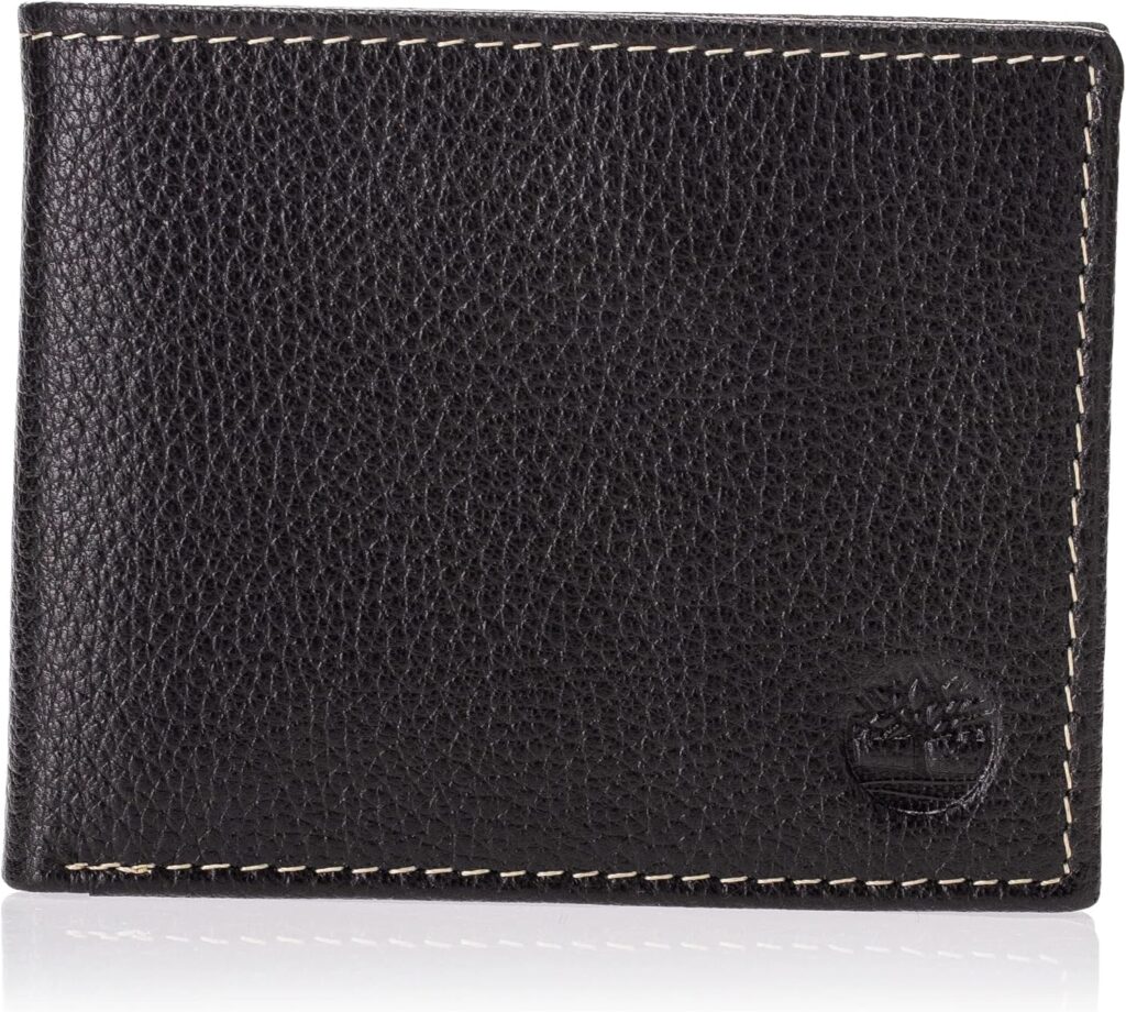 Carteira de couro Timberland com bolso dobrável anexado – uma carteira compacta funcional com muito armazenamento, 4 bolsos para cartões de crédito, 2 divisórias para identidade, bolso grande para notas e bolso dobrável anexado.