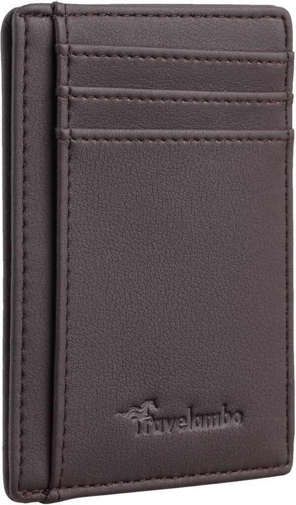 Travelambo Carteira fina minimalista de couro com bolso frontal com bloqueio de RFID, tamanho médio, Cinza profundo, One Size, Minimalista