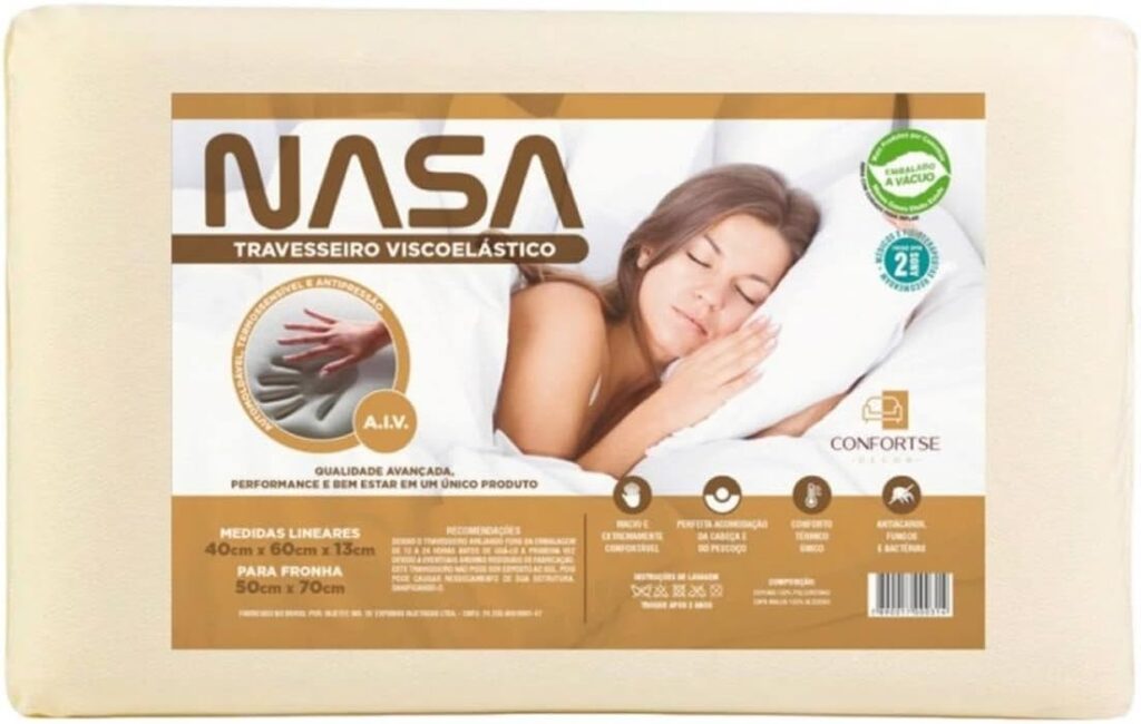Travesseiro Nasa Viscoelastico Automoldavel, 40x60x13cm, Unid