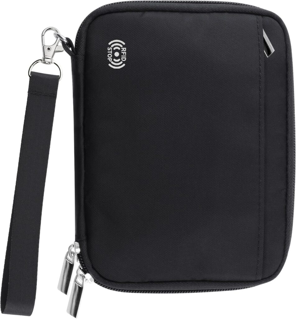 WALNEW Porta-passaporte para família para 4, carteira de viagem com bloqueio de RFID, feminina, masculina, leve, com zíper, bolsa organizadora de documentos, bolsa para cartões de crédito, capa para