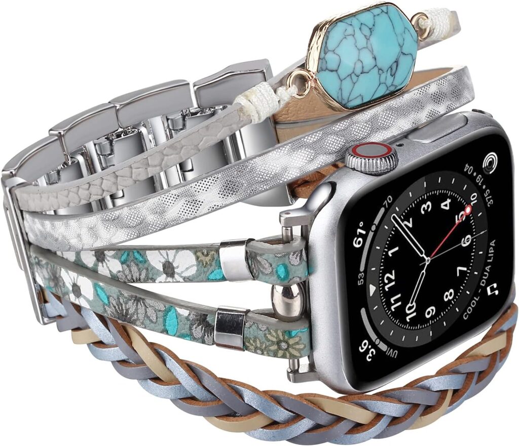 Wingoden Pulseira Boho compatível com Apple Watch de 41 mm/38 mm/40 mm 49 mm/45 mm/44 mm/42 mm com contas de pedra natural, pulseira para Apple Watch ultra série 9/8/7/6/5/4/3/2/1/SE/Ultra 2